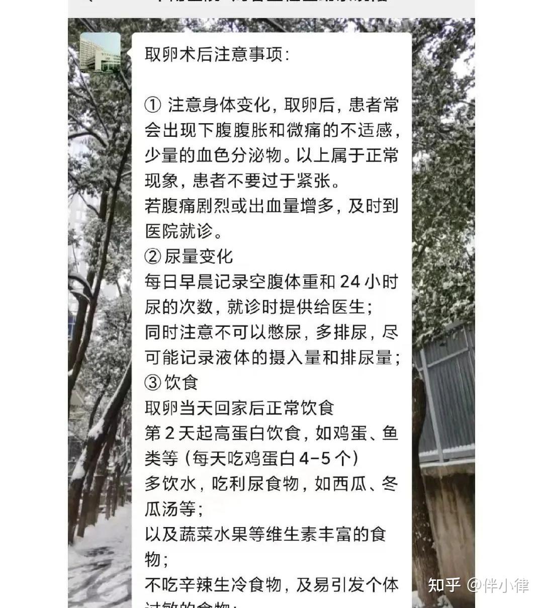 夜針第二天,到達醫院做取卵前需要的各項檢查,還是空腹,陰道清洗,給醫生看報告,補針,帶上男女雙方結婚證,身份證辦理取卵手續,回家。從打夜針這天開始就要大量喝水,預防腹水。