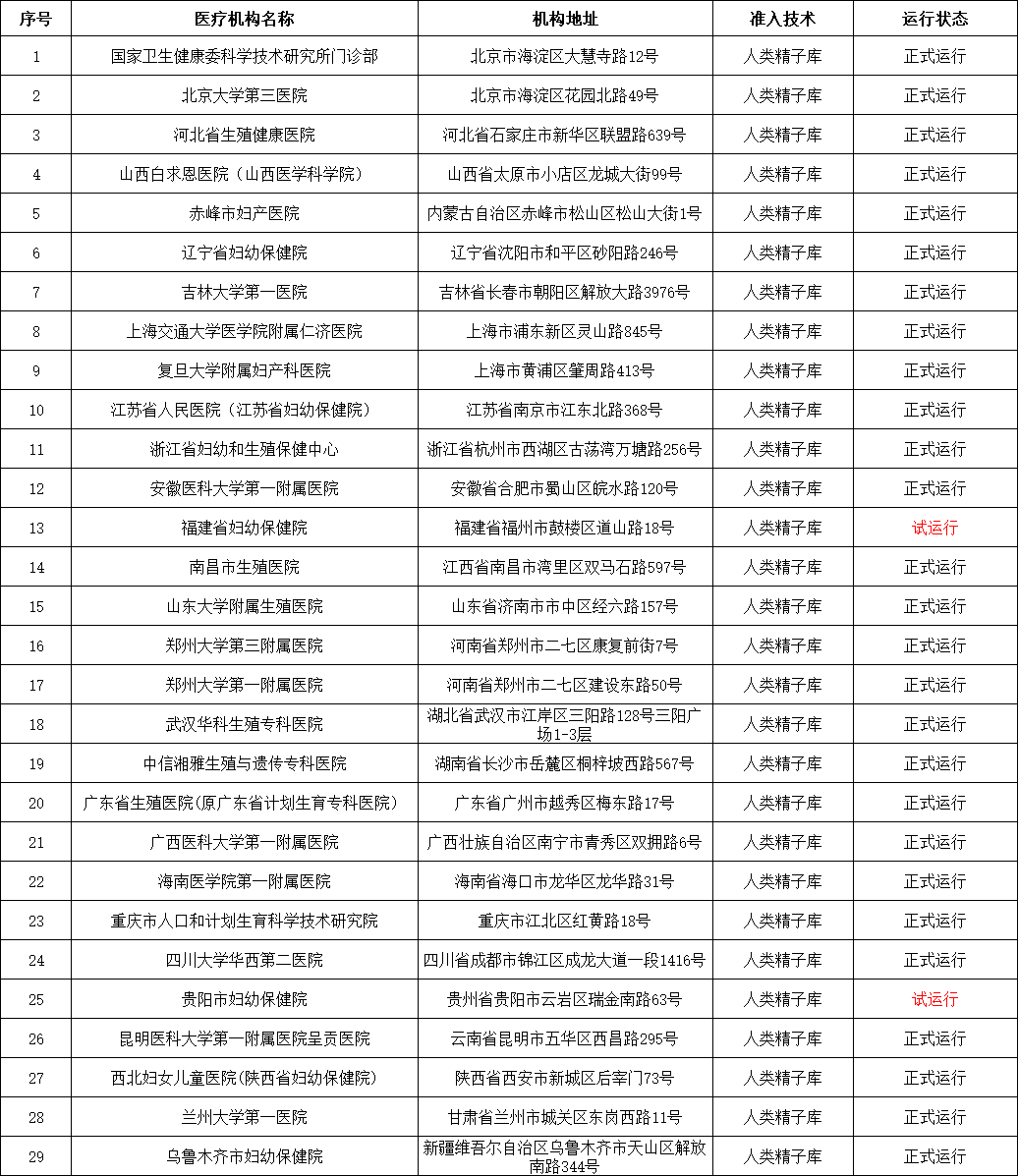 2023年7月3日,名單婦幼健康司更新了《經批準開展人類輔助生殖技術和設置人類精子庫的匯總醫療機構名單》,截止2022年12月31日,最新做試經批準開展人類輔助生殖技術的版全醫療機構共559家,經批準設置人類精子庫的國可管嬰醫療機構共29家,所列機構按省級行政區劃和準入時間進行排序。醫療
